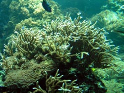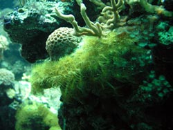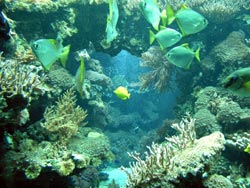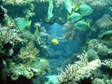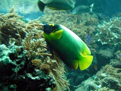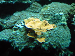 Vor der eigentlichen Führung machte ich noch einen Abstecher ins Aquarienhaus. Einen sehr schönen Einblick durch die Schräge Frontscheibe ermöglicht das Anemonenbecken. Das 80.000-Liter Riffbecken macht einen imposanten Eindruck. Steinkorallen sind leider nur vereinzelt zu sehen, zu sehr dominieren die Weichkorallen, die schon fast den ganzen unteren Bereich überwuchert haben.
