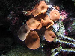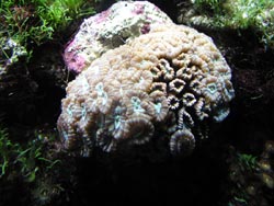 Eher nach "Aquarium" sieht das kleine Becken neben dem großen Riffbecken aus. Es ist haupsächlich mit Scheibenanemonen und Algen bewachsen. Als einzige Steinkoralle war eine Calaustrea zu entdecken.