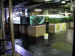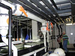 Der Aufwand zum Betrieb des Aquarienhauses ist schon enorm. Die Verrohrungen leiten das Wasser aus den Becken zu den entsprechenden technischen Einrichtungen. "Salzwasserseitig" sind insgesamt 140.000 Liter im Umlauf.