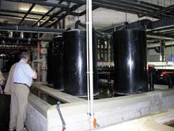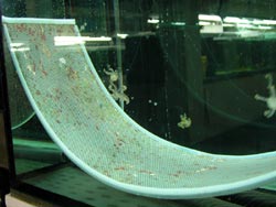 Auch die Quallen (Phyllorhiza punctata) in der Ausstellungsanlage müssen vermehrt werden. Am rechten Bild sieht man die Rieselfilter des Süßwasserbereichs.